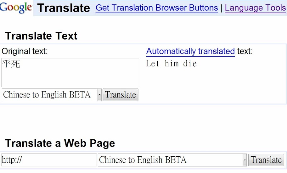 那就是 輸入 " 乎死 " 居然出現了 " Let him die "!!